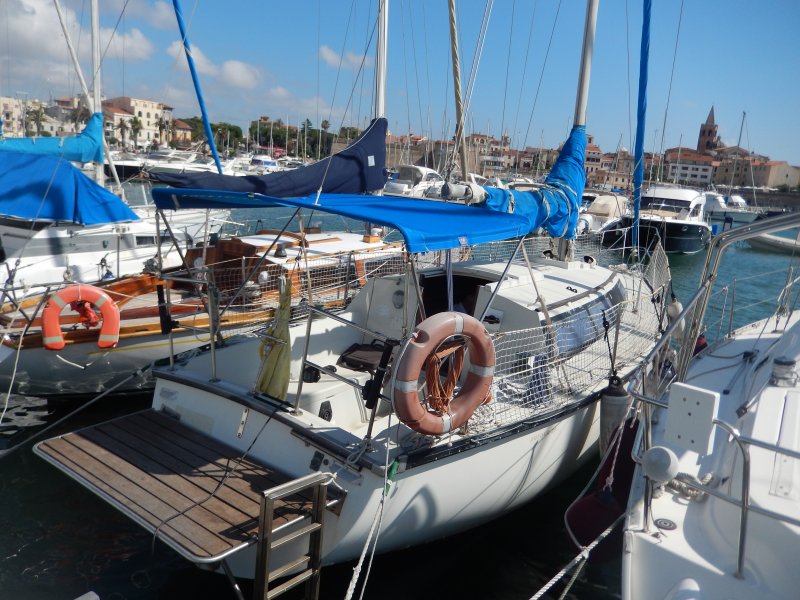 1 Randa, 1 Genoa avvolgibile, Gps cartografico Garmin Gps 421, eco, pilota automatico per timone a barra, Vhf sul tavolo da carteggio, salpa ancora elettrico, 1 frigor elettrico, cucina a 2 fuochi, scaletta in inox, spiaggetta poppiera in acciaio inox e teak, copertura pozzetto (bimini).